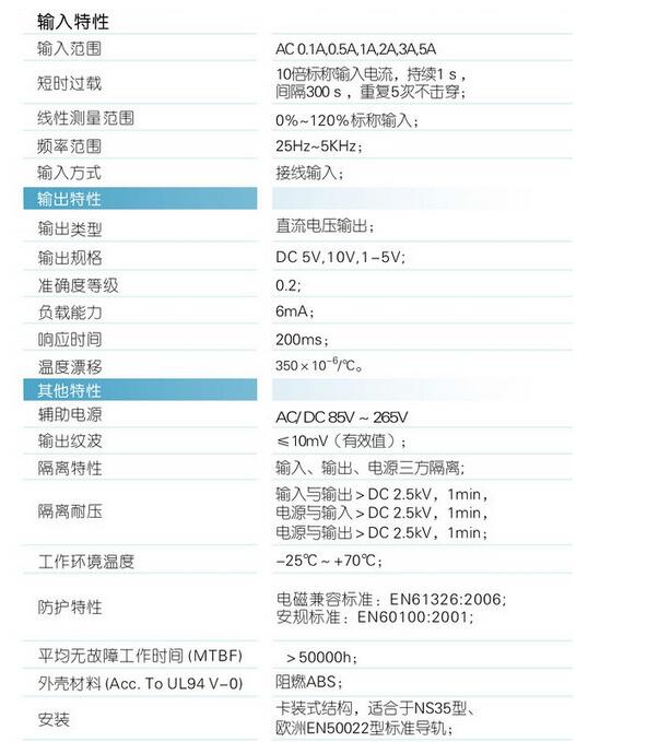 輸入規(guī)格:AC 0-5A范圍可選