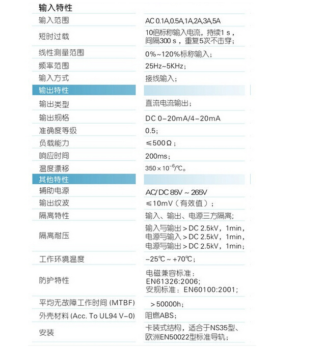 輸入規(guī)格:AC 0-5A范圍可選