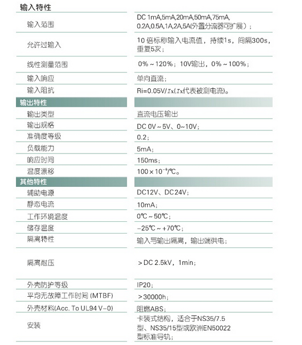 輸入規(guī)格:DC 1mA~5A范圍可選,外置分流器可擴(kuò)展