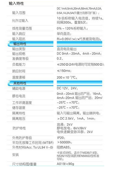輸入規(guī)格:DC 1mA~5A范圍可選,外置分流器可擴展