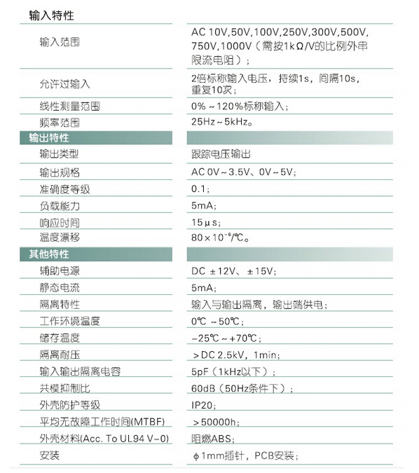 輸入規(guī)格:AC 10V-1000V范圍可選(需按1kΩ/V的比例外串限流電阻)