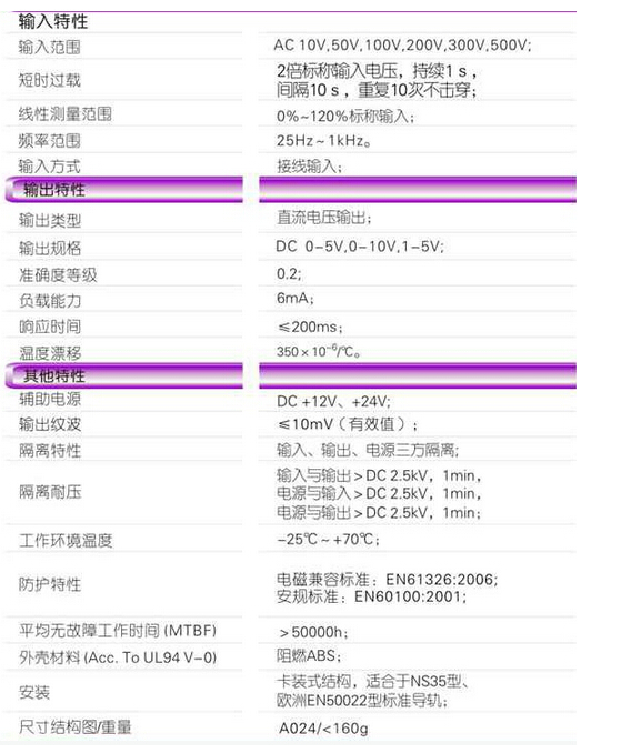產(chǎn)品型號:WBV412H25 輸入規(guī)格:AC 10V~500V范圍可選 輸出規(guī)格:DC 5V,10V,1-5V 輔助電源:DC 12V,24V 孔徑大小: 安裝方式:導(dǎo)軌安裝
