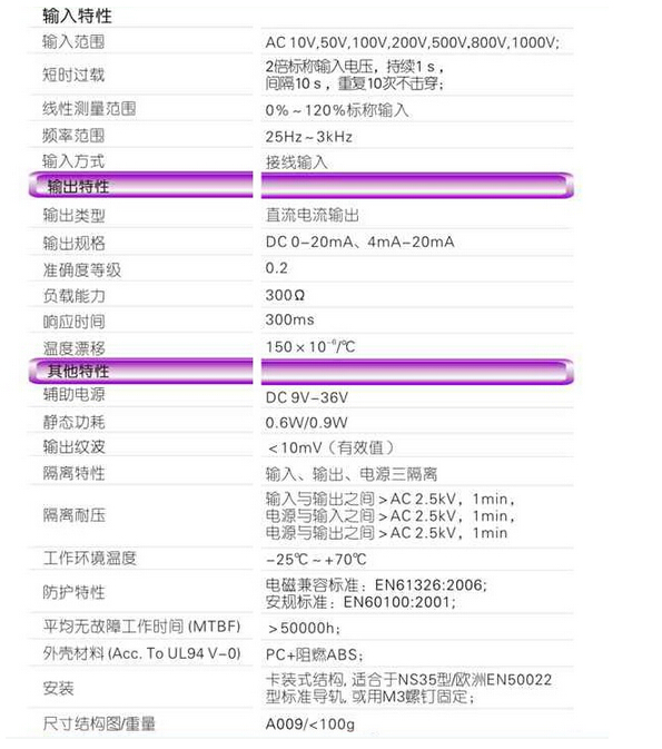 輸入規(guī)格:AC 10V~1000V范圍可選