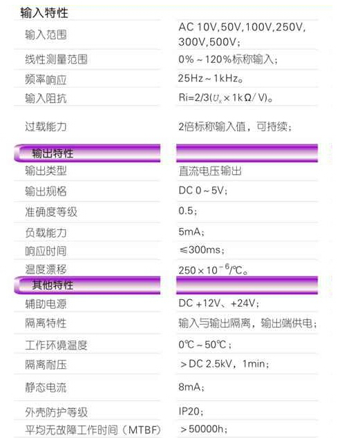 WB3V412U01三相交流電壓傳感器(三相四線)