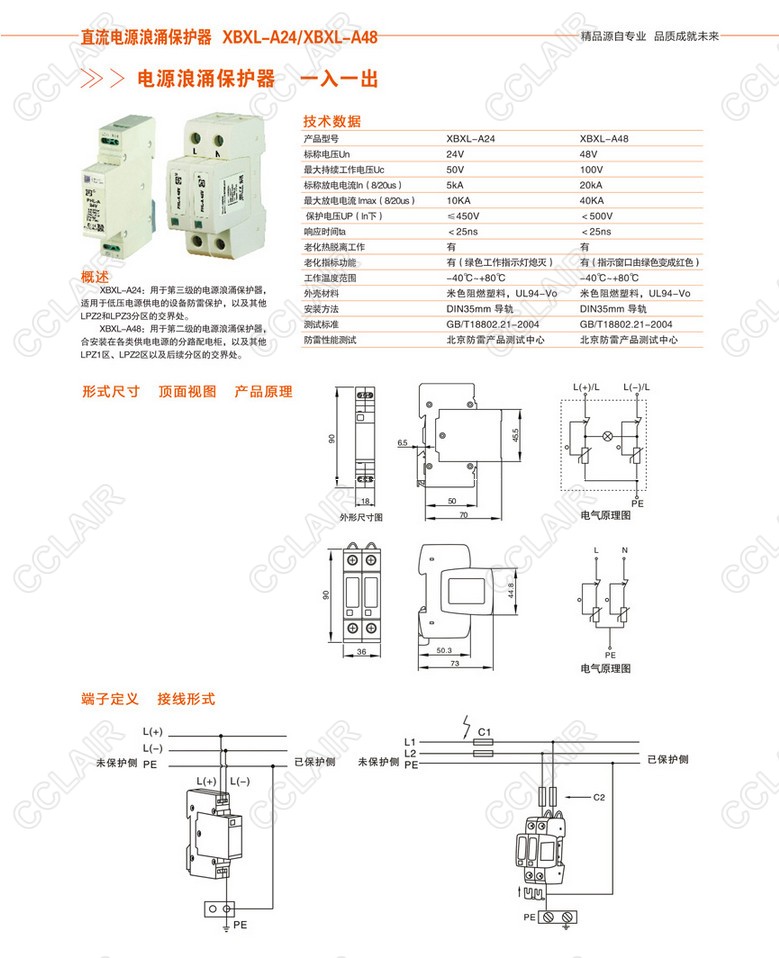 XBXL-A24,XBXL-AXBXL-A48,直流電源浪涌保護(hù)器(一入一出)
