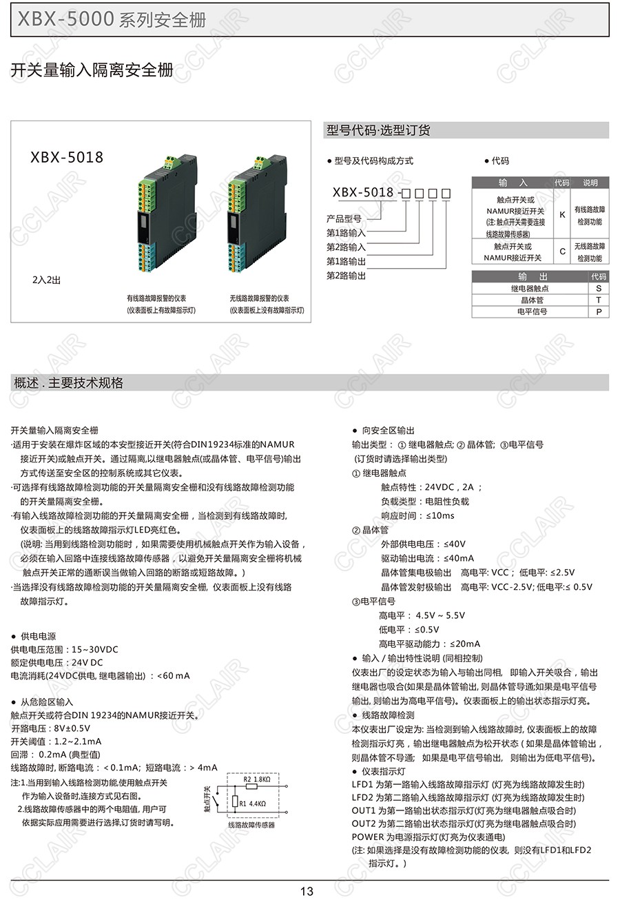 XBX-5018,XBX-5018-CS,XBX-5018-CT,XBX-5018-CP,開關(guān)量輸入隔離安全柵(一入一出)