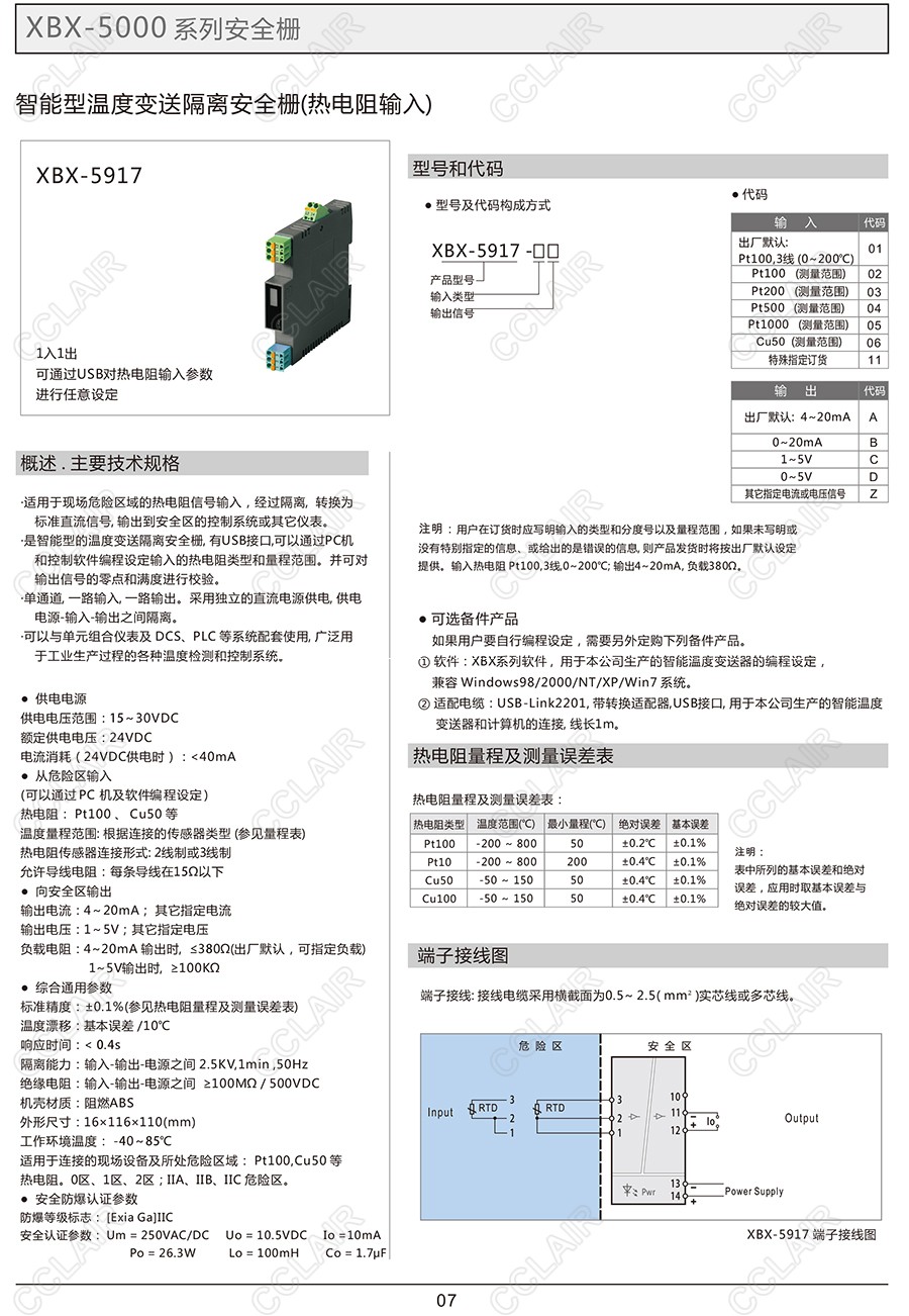 XBX-5917,XCX-5917-02C,XCX-5917-03C,XCX-5917-04C,智能型溫度變送器隔離安全柵(熱電阻輸入)(一入一出)