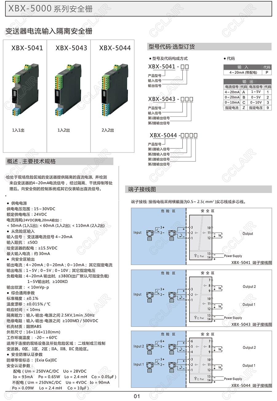 XBX-5041,XBX-5044-PB2,XBX-5044-PC3,XBX-5044-PZ9,變送器電流輸入隔離安全柵帶配電(一入一出、一入二出、二入二出)