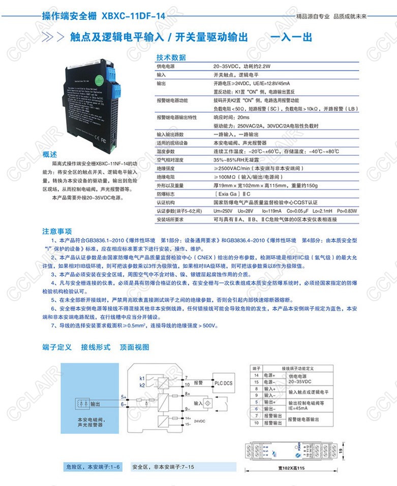 XBXC-11DF-14,操作端安全柵開(kāi)關(guān)量驅(qū)動(dòng)輸出(一入一出)