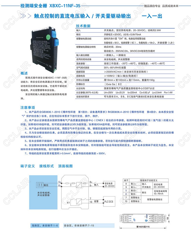 XBXC-11NF-35,檢測(cè)端安全柵開關(guān)量驅(qū)動(dòng)輸出(一入一出)