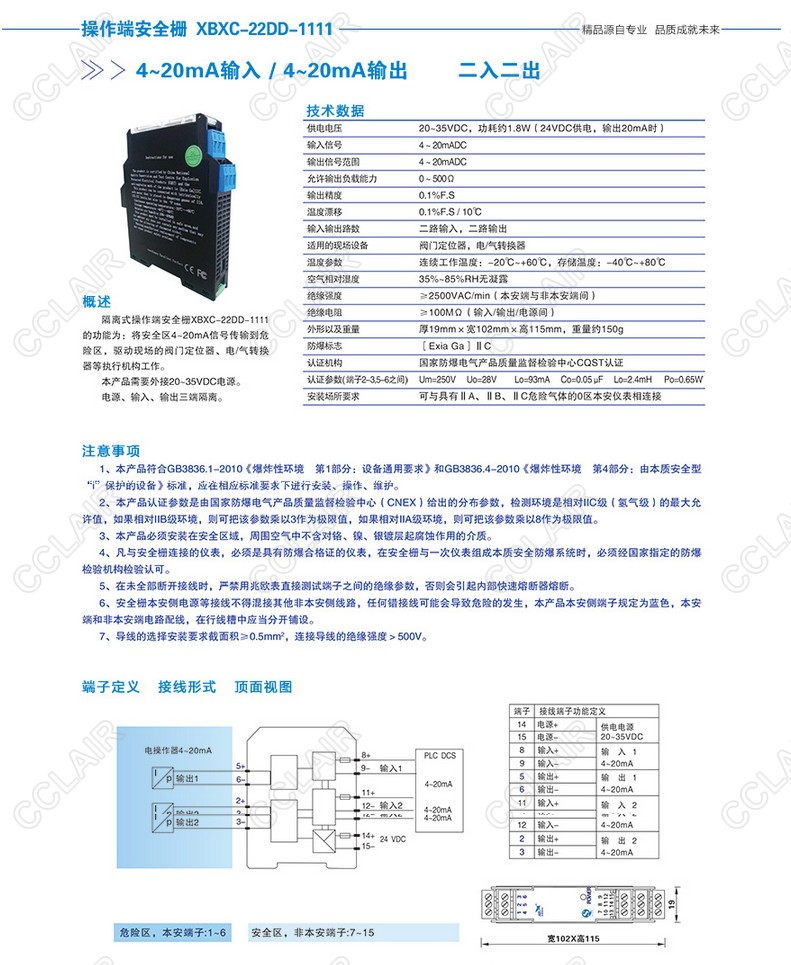XBXC-22DD-1111操作端安全柵模擬量驅(qū)動輸出(二入二出)