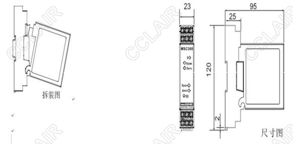 35mm導(dǎo)軌卡裝;主機(jī)與底座可以插拔分離 (120mm*95mm*25mm)