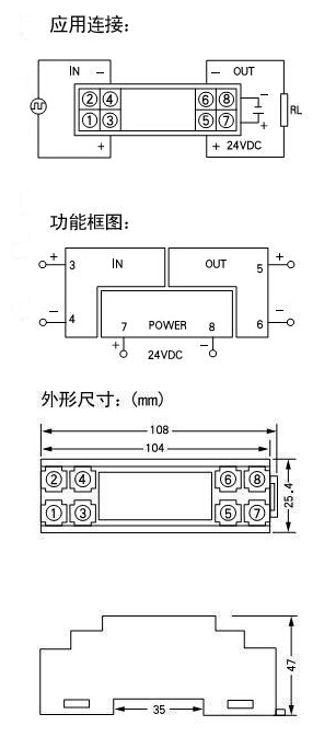 將脈沖正弦波信號整形,隔離輸出二路脈沖方波, DIN T型導軌安裝 |
