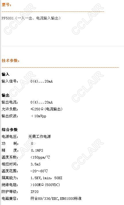 PF5001AA,PF5001AB,PF5001BA,PF5001BB,PF5001無(wú)源電流型超薄隔離