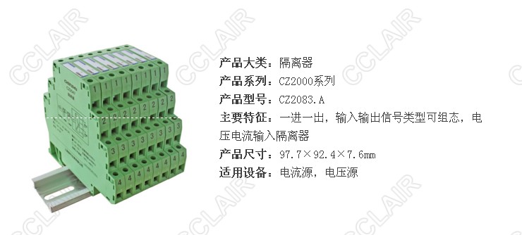 CZ2083 一進一出 電壓電流輸入隔離器 7.6mm超薄外殼,節(jié)省安裝空間。功耗低至0.5W,多種量程選擇,可現(xiàn)場設(shè)置。 CZ2083.A 一進一出 電壓電流輸入隔離器 7.6mm超薄外殼,節(jié)省安裝空間。功耗低至0.5W,多種量程選擇,可現(xiàn)場設(shè)置。