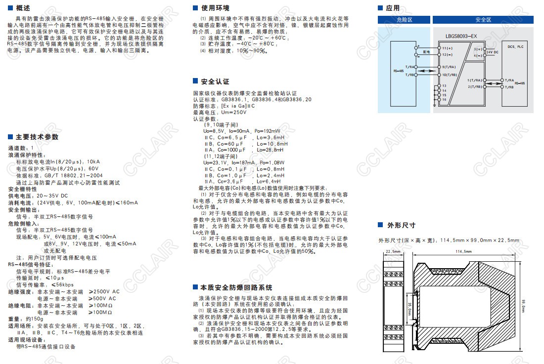 LBGS8093-EX 一進(jìn)一出 RS-485半雙工輸入輸出隔離式安全柵