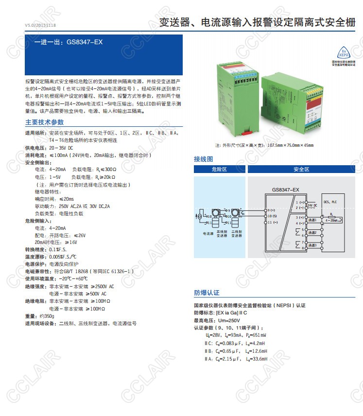 GS8347-EX 一進(jìn)三出 報(bào)警設(shè)定隔離式安全柵