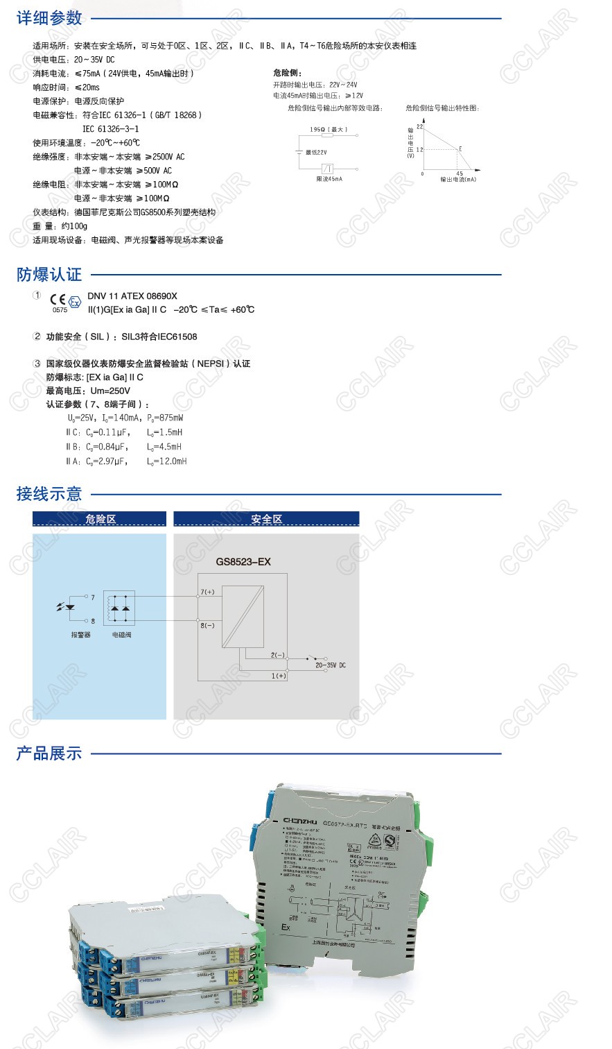 電磁閥、聲光報警器等一些小功率本安設(shè)備。輸入輸出隔離,允許控制開關(guān)直接連到24V DC供電