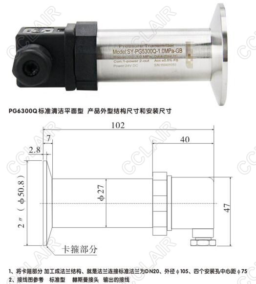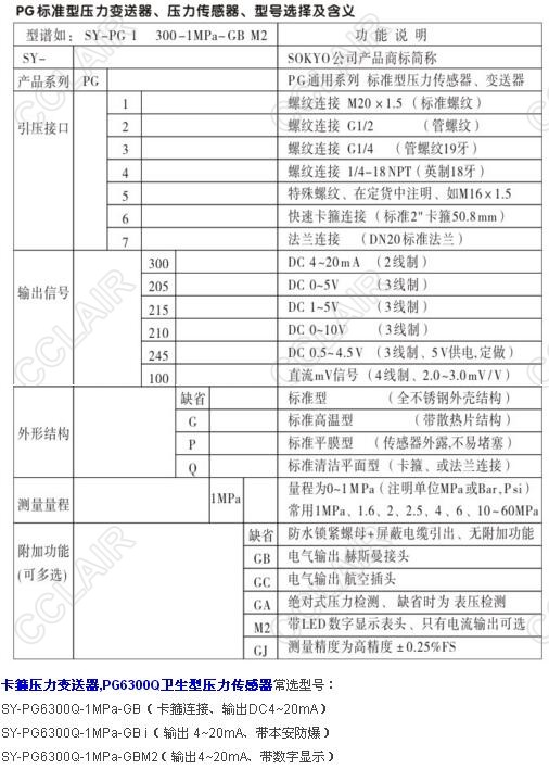 SY-PG6300Q-1MPa-GB (卡箍連接、輸出DC4~20mA) SY-PG6300Q-1MPa-GB i (輸出 4~20mA、帶本安防爆) SY-PG6300Q-1MPa-GBM2(輸出4~20mA、帶數(shù)字顯示)