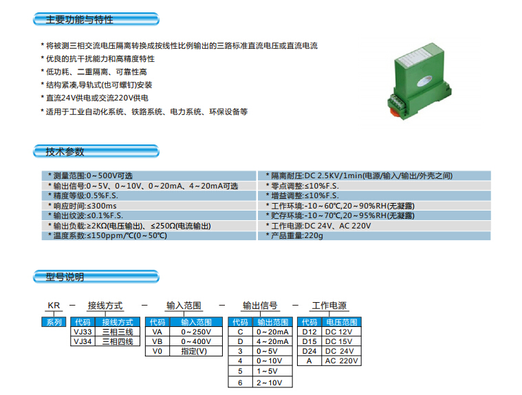 KR-VJ33,KR-VJ34 三相電壓隔離變送器