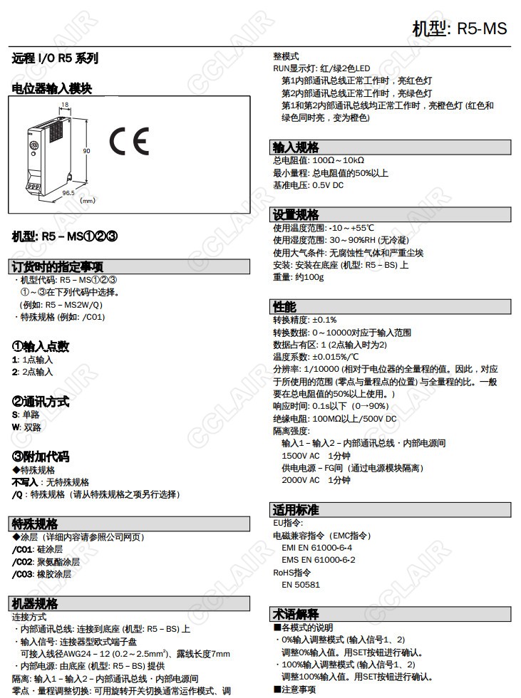 R5-MS,R5-MS2W/Q,R5-MS1S,R5-MS1W,R5-MS2S,R5-MS2W,電位器信號輸入模塊