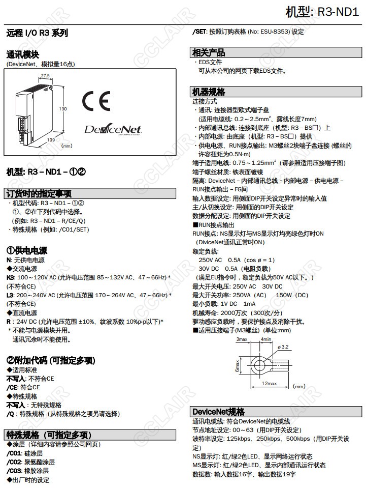 R3-ND1,R3-ND1-R/CE/Q,R3-ND1-N,R3-ND1-K3,,DeviceNet 模擬量信號(hào) 16點(diǎn)通訊模塊R3-ND1-L3,R3-ND1-R