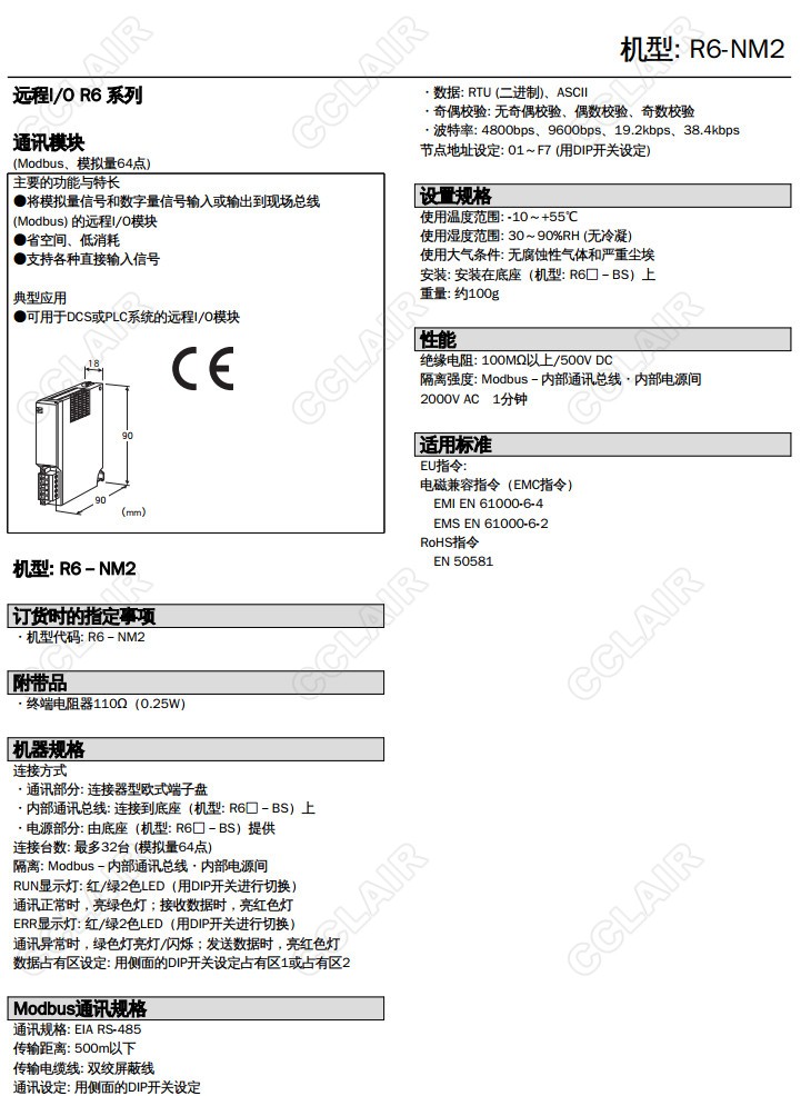 R6-NM2 Modbus通訊模塊 64點模擬量信號