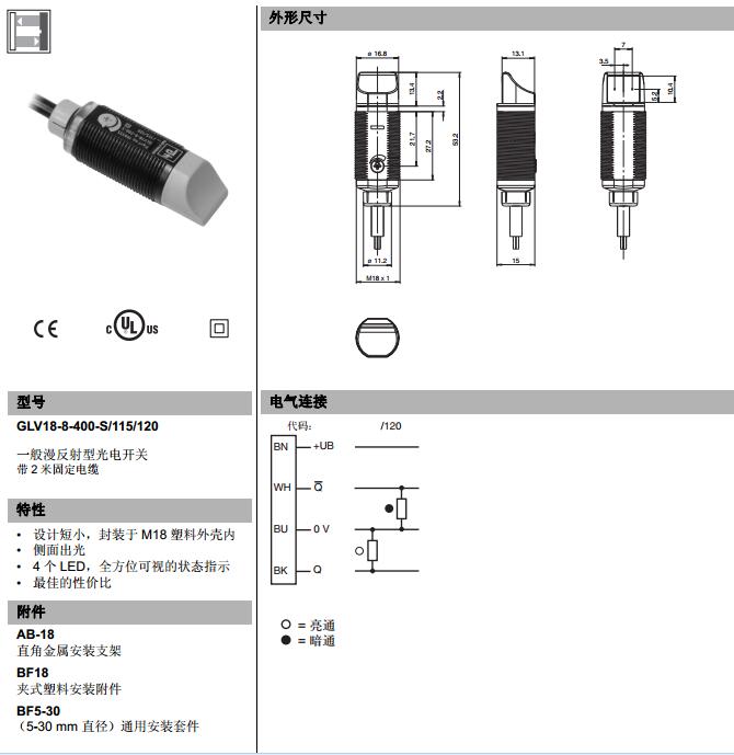 GLV18-8-400-S/115/120,漫反射型傳感器