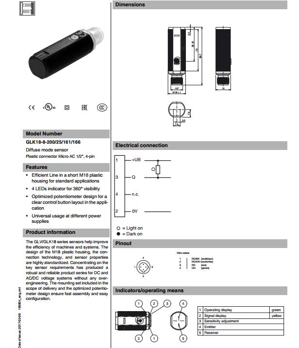 GLK18-8-200/25/161/166,漫反射型傳感器