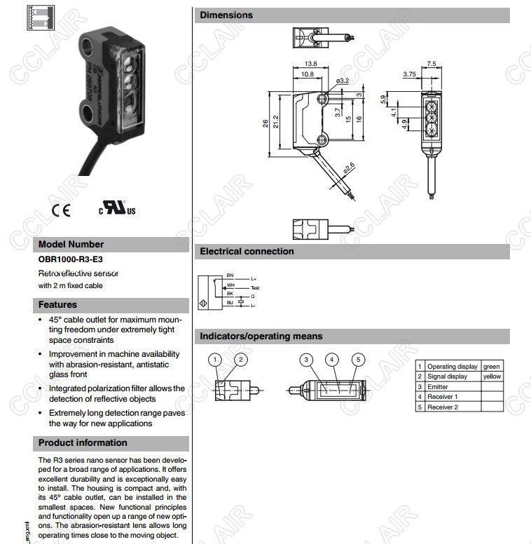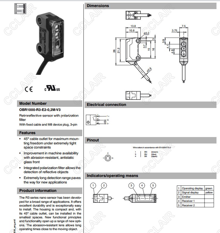OBR1000-R3-E2-0,2M-V3,OBR1000-R3-E2-0,2M-V31,OBR1000-R3-E3,反射板型傳感器