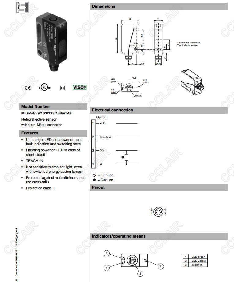 ML9-54/59/103/123/134a/143,ML9-54/59/103/123/143,反射板型傳感器