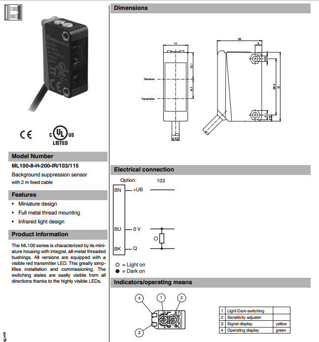ML100-8-H-200-IR-103-115,漫反射型傳感器.