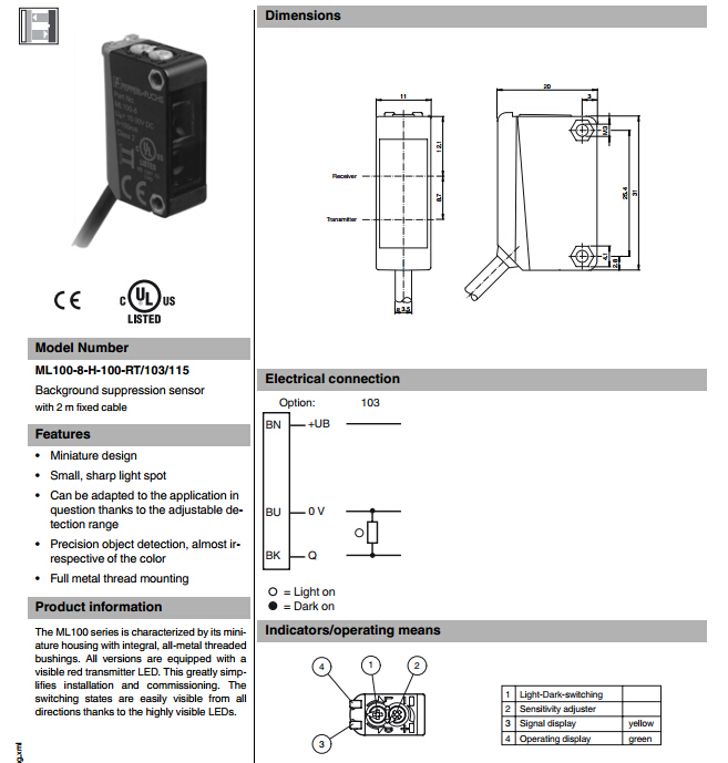 ML100-8-H-100-RT-103-115,漫反射型傳感器