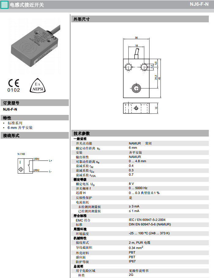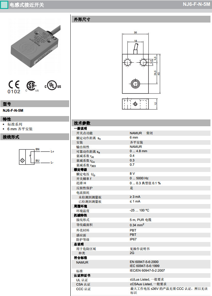 NJ6-F-N,NJ6-F-N-5M感應(yīng)式傳感器