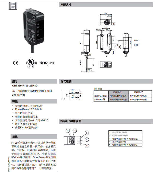 OBT350-R100-2EP-IO,漫反射型傳感器