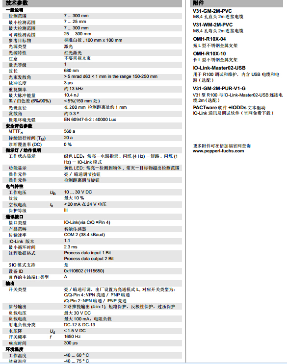 OBT300-R100-2EP-IO-V31-L,漫反射型傳感器