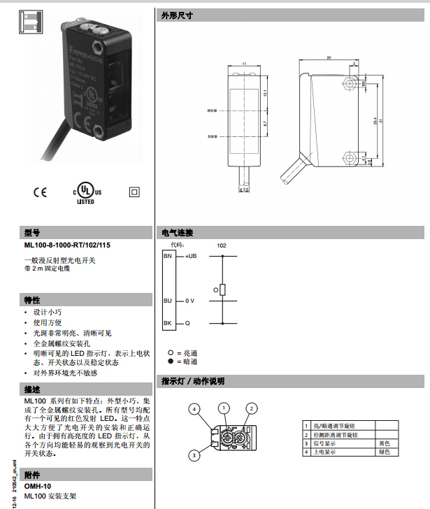 ML100-8-1000-RT-102-115,漫反射型傳感器.