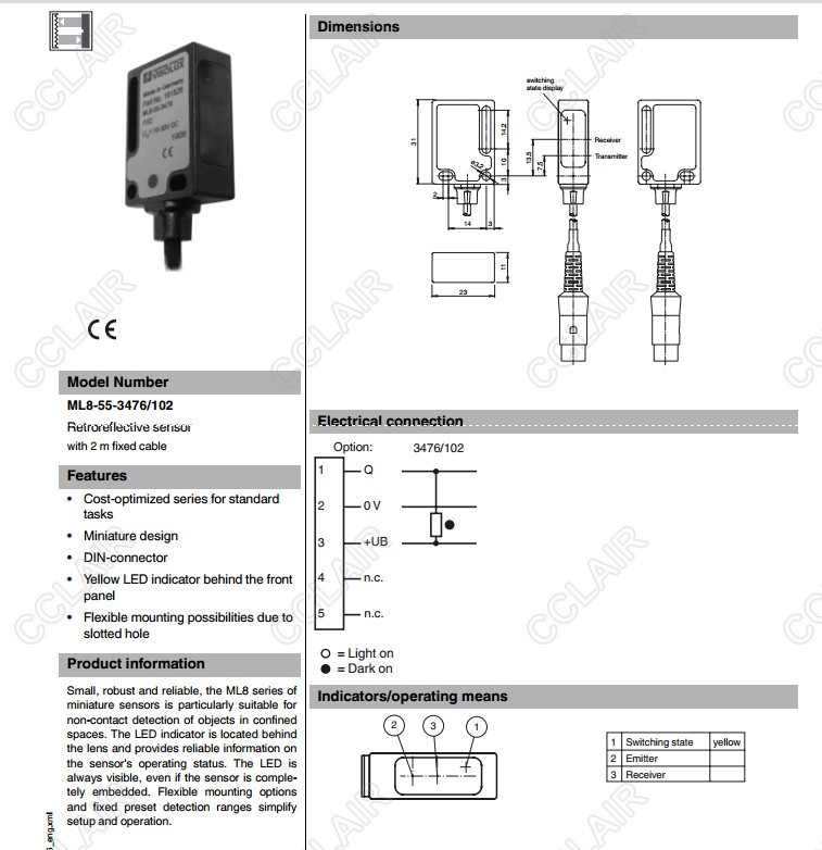 ML8-55-3476/102,反射板型傳感器