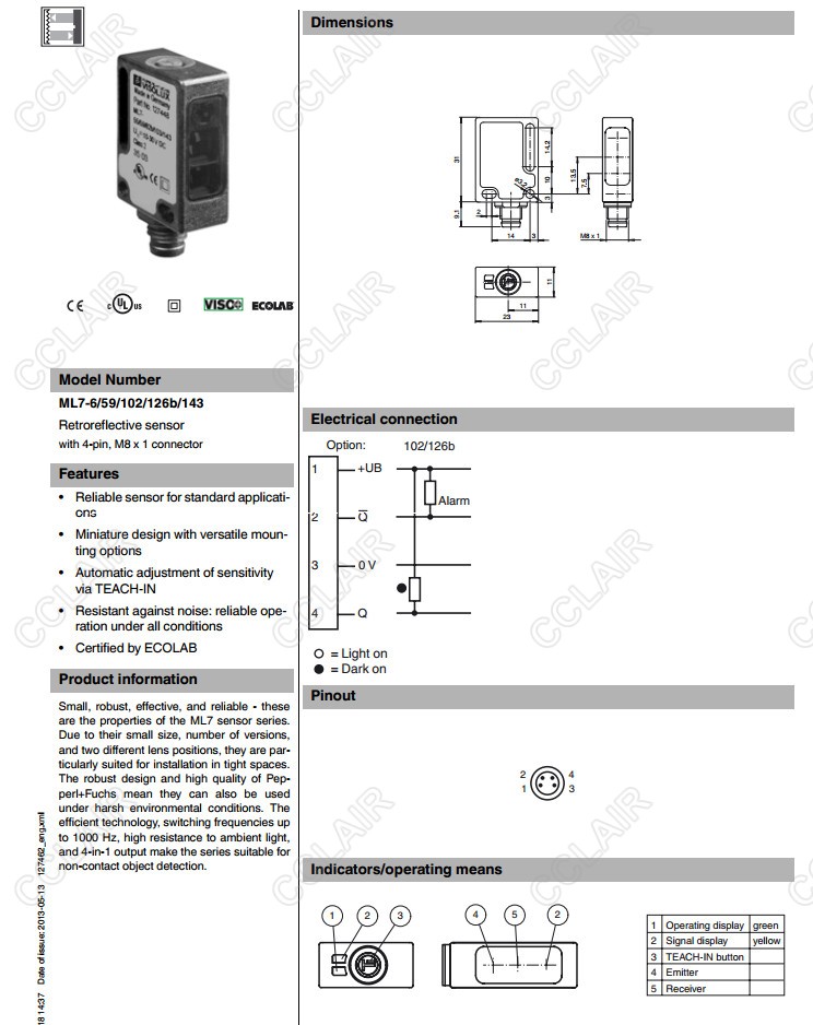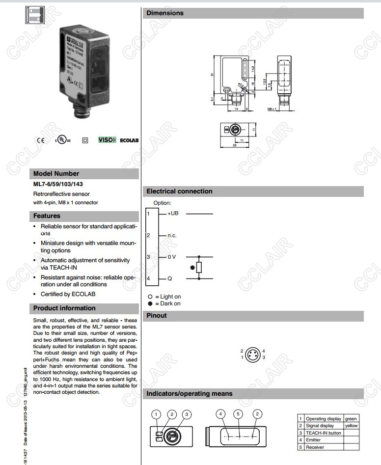 ML7-6/59/102/126b/143,ML7-6/59/103/143,反射板型傳感器