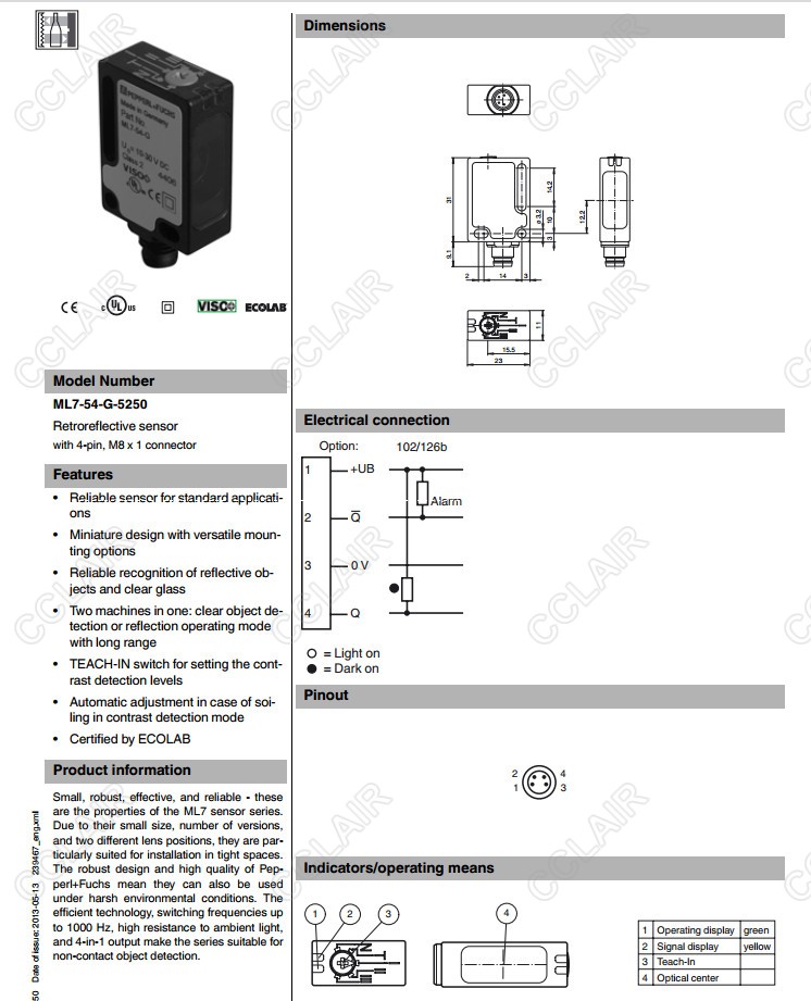 ML7-54-G-5250,反射板型傳感器