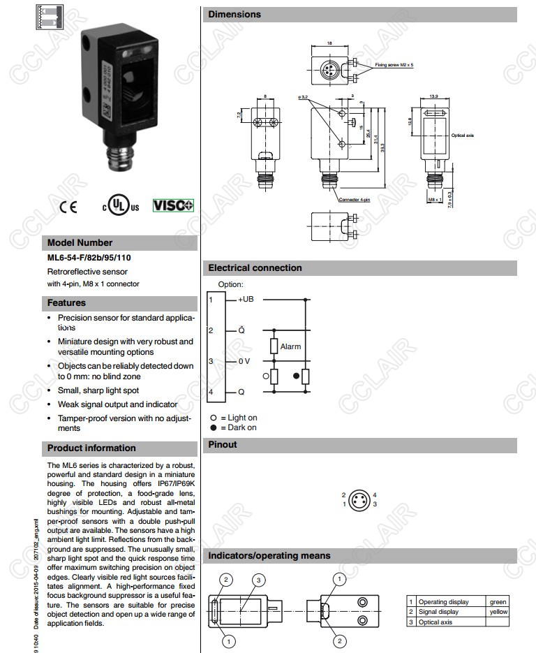 ML6-54-F/25/95/136,ML6-54-F/82b/95/110,反射板型傳感器
