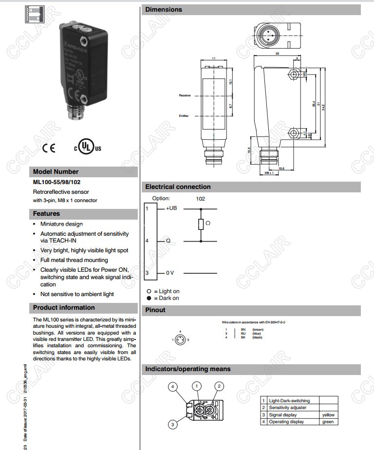 ML100-55/59/95/103,ML100-55/98/102,反射板型光電開關(guān)