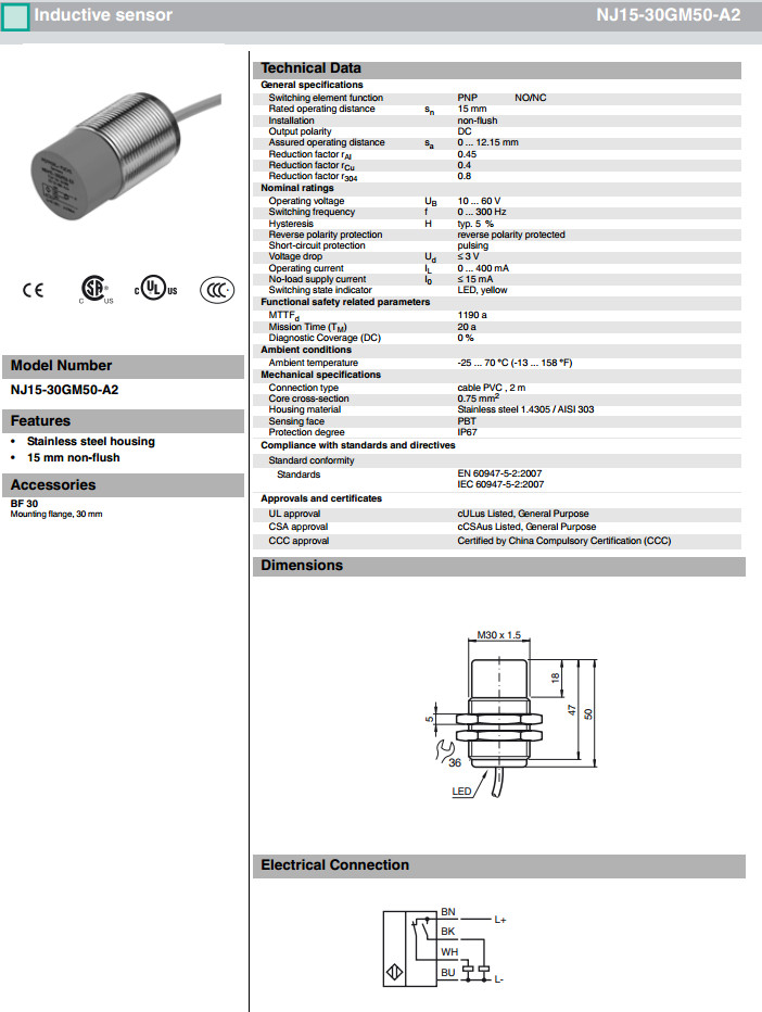 NJ15-30GM50-A2感應式傳感器