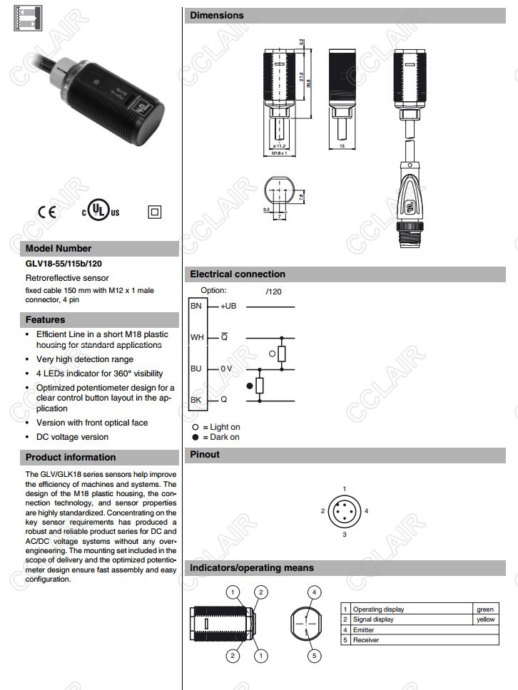 GLV18-55/115b/120,GLV18-55/33/115/120 C=3/5m,反射板型傳感器