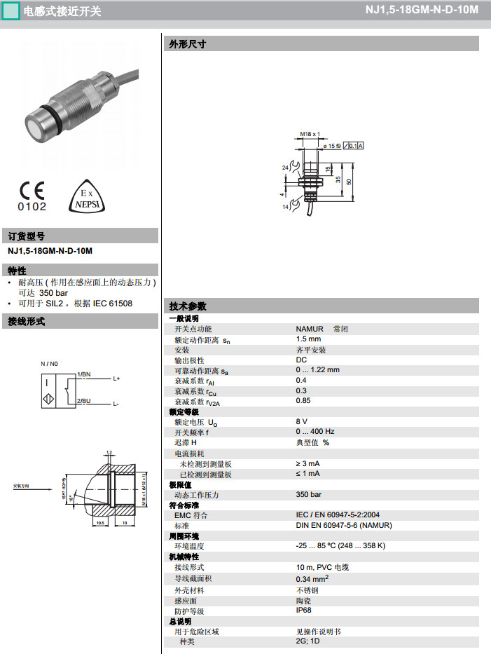 NJ1,5-18GM-N-D-10M感應式傳感器