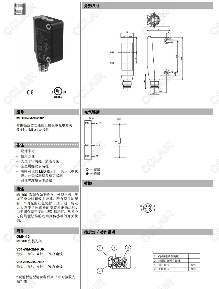 ML100-54/95/102,ML100-54/95/103,ML100-55/98/103,ML100-6-IR/95/103,反射板型傳感器