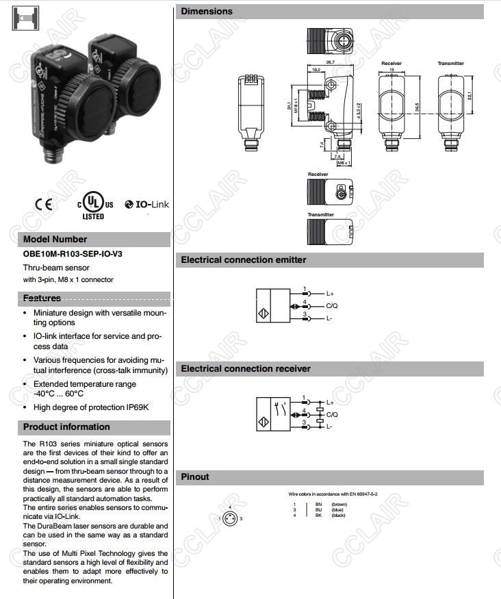 OBE10M-R103-S2EP-IO-V31,OBE10M-R103-SEP-IO-0/3M-V3,OBE10M-R103-SEP-IO-V3,對射型傳感器