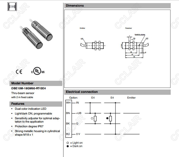 OBE10M-18GM60-RT-SE4,對射型傳感器