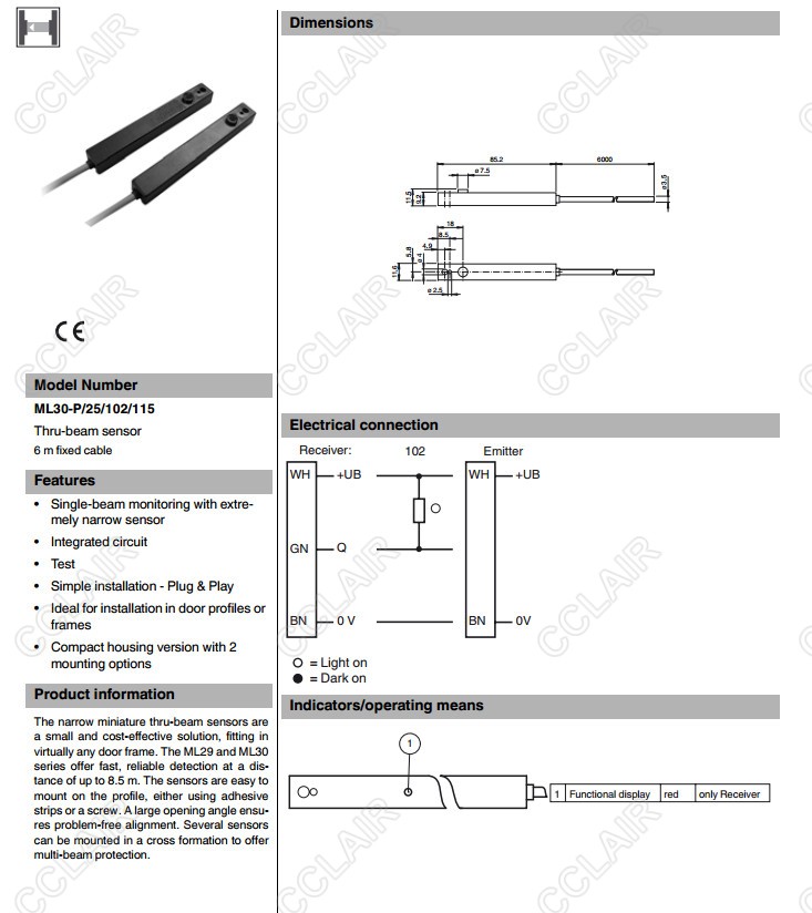 ML30-P/25/102/115,對射型傳感器