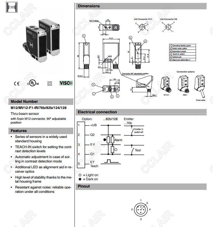 M12/MV12-F1-IR/76b/82b/124/128,M12/MV12-F1/76b/82b/124/128,對射型傳感器